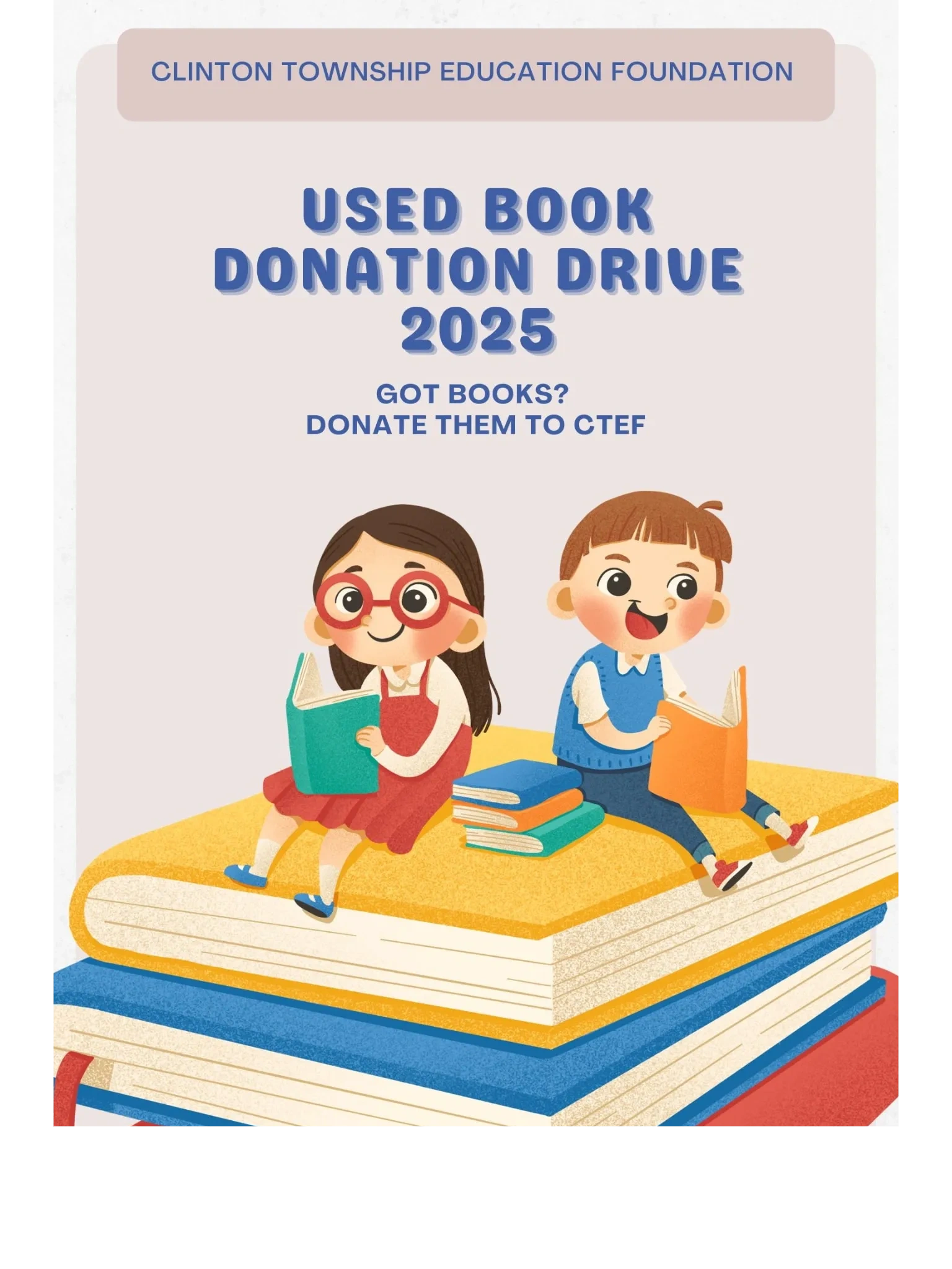 CTEF is excited to announce our first ever Used Book Sale! We are collecting used books in bins at each of our schools. Students may bring books from home, or families can drop off donations at any time.